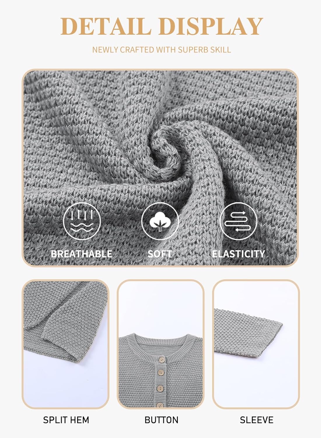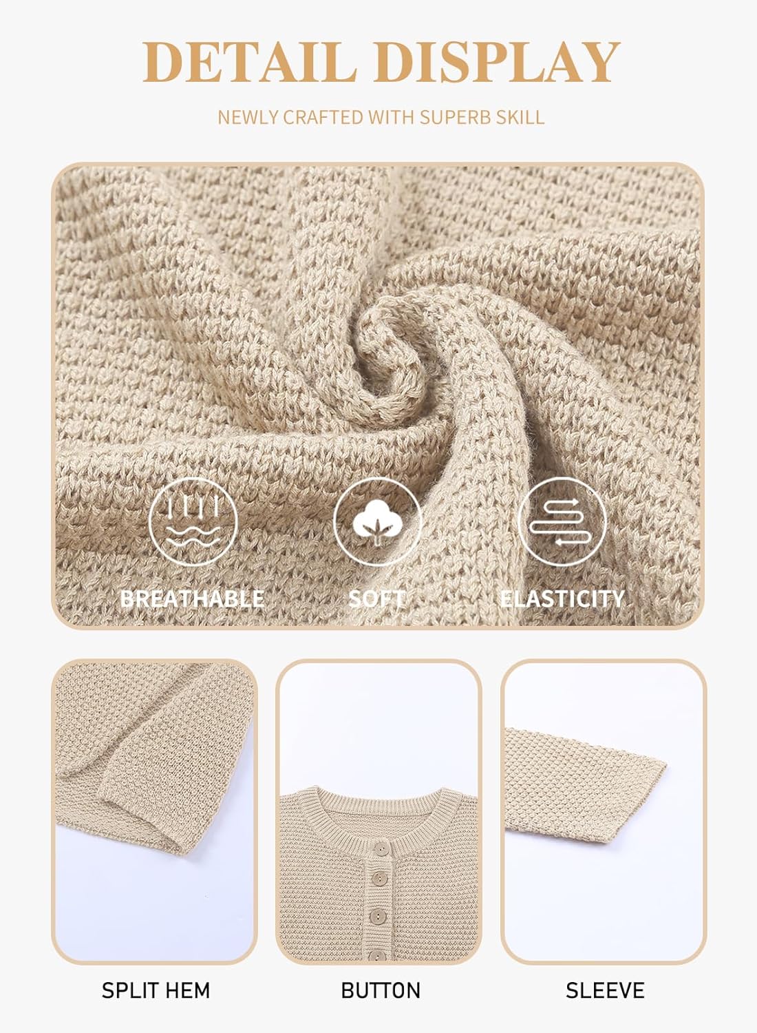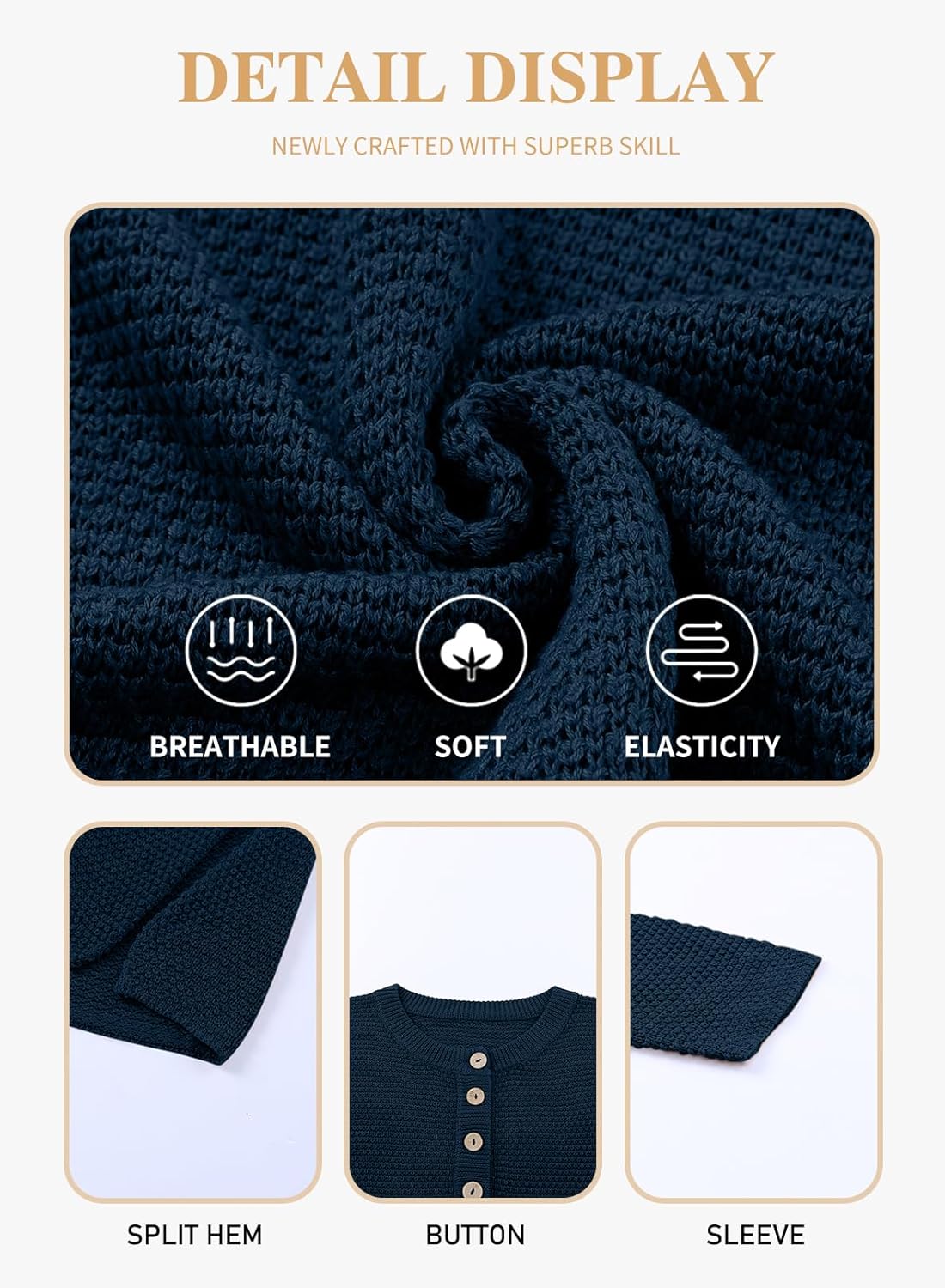- Plus size button henley sweater is made of 55%Acrylic+45%Cotton, a soft knit material-it's so lovely and and a lightweight, breezy material.